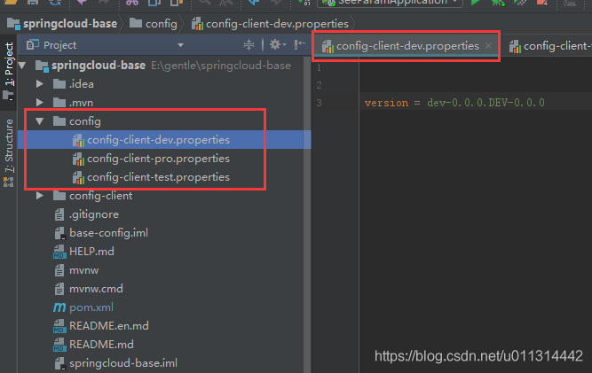 此时设置为读取 springcloud-base中的 配置文件 :config-client-dev.properties