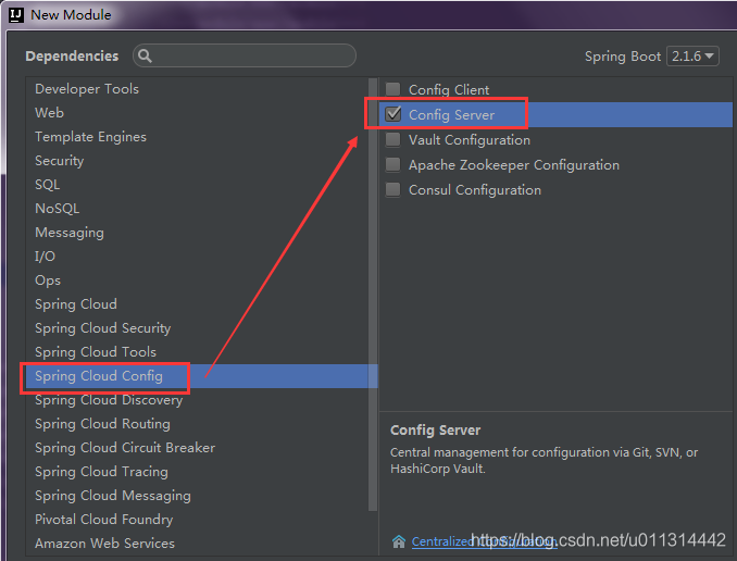 4. spring cloud config- 勾选 config server,next。