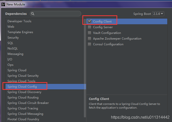 4. spring cloud config- 勾选 config client,next。