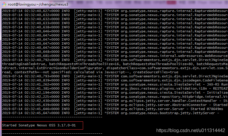 -tid :创建守护式容器 。-p 8081:8081 :宿主机端口(对外访问端口):容器映射端口。这2个端口可不一样。浏览器访问URL用前面个端口 。--privileged=true :容器访问宿主机的多级目录时可能会权限不足,故给 root 权限 。--name nexus3 :给容器取名,可任意设定。-v $PWD/nexus-data:/var/nexus-data :把容器中的 nexus-data 目录挂载到宿主机当前路径下的 nexus-data 下。方便以后查看相关数据。$PWD :取当前路径。此处可以写死为某个完整的确定的目录。 挂载格式为: -v 宿主机目录 :容器目录 。 --restart=always :服务挂后,自动重启 。docker.io/sonatype/nexus3 :镜像名 。