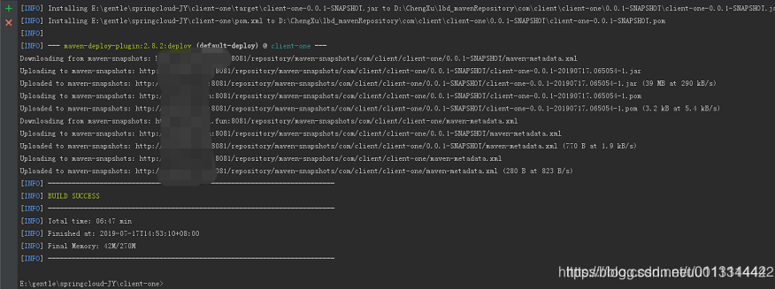 执行命令:mvn clean deploy -Dmaven.test.skip=true 推送 jar 到私服: