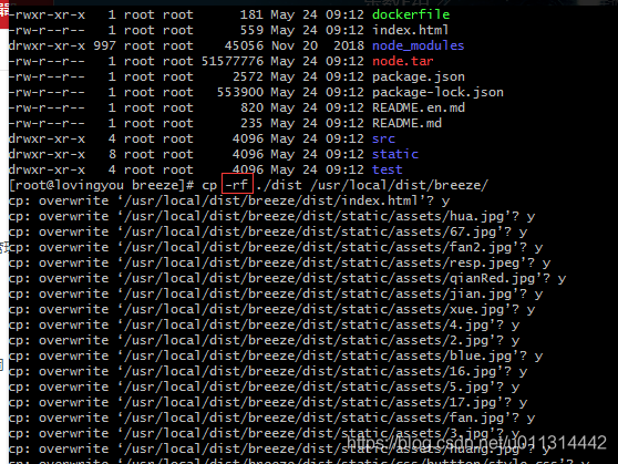 1. 运行 cp -rf 命令时依旧给出无数提示,要求确认,很是麻烦,如下图: