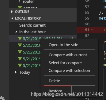 3. 左下角会有新的本地历史文件夹 LOCAL HISTORY 。