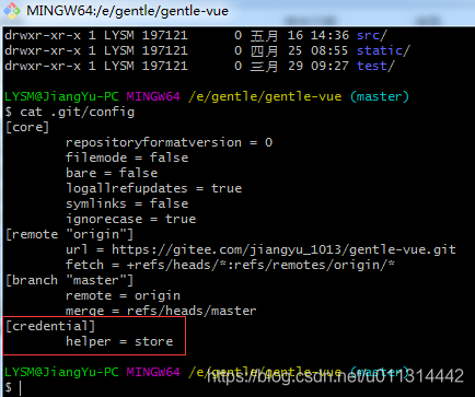 2. 运行后 查看 .git文件夹的 config 文件,发现最后多了两行内容: