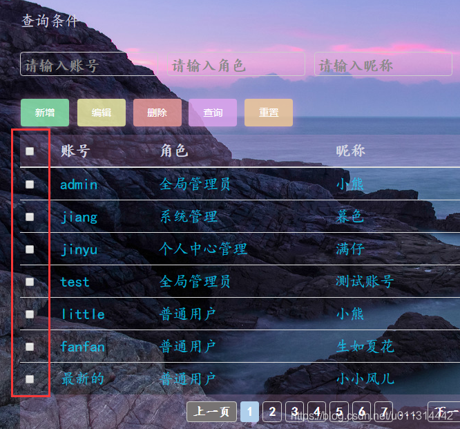 1. 表格生成后第一列是复选框,效果: