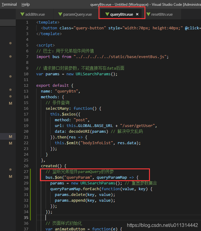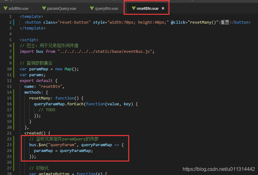 // 传参到兄弟组件:queryBtn。queryParamMap是参数,可以传多个参数,用逗号分隔
