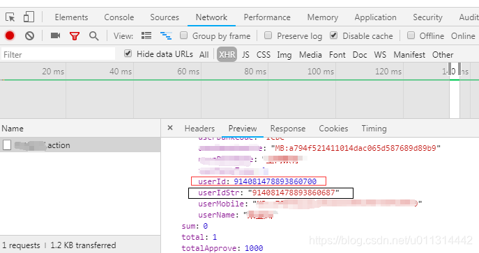 如上图 黑色框中字段 :userIdStr ,正常解析了该数据值。
