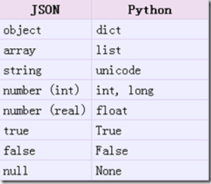 把Json格式字符串解码转换成Python对象 从json到python的类型转化对照如下:、