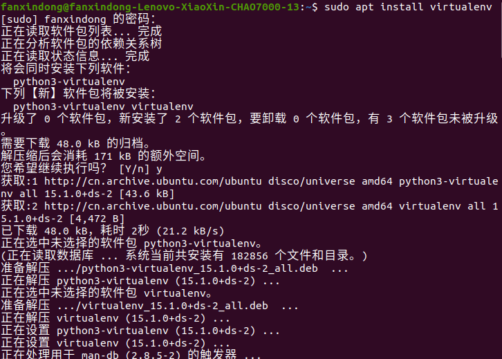 安装完成之后,进入home目录,输入命令ls -al查看是否出现.virtualenvs目录,如果没有则手动创建.virtualenvs目录