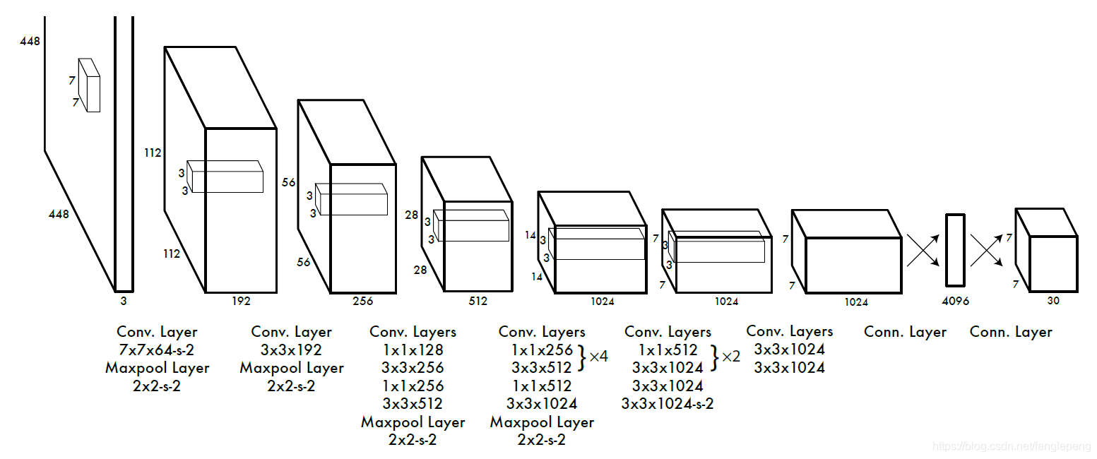 由于输出层为全连接层,因此在检测时,YOLO训练模型只支持与训练图像相同的输入分辨率