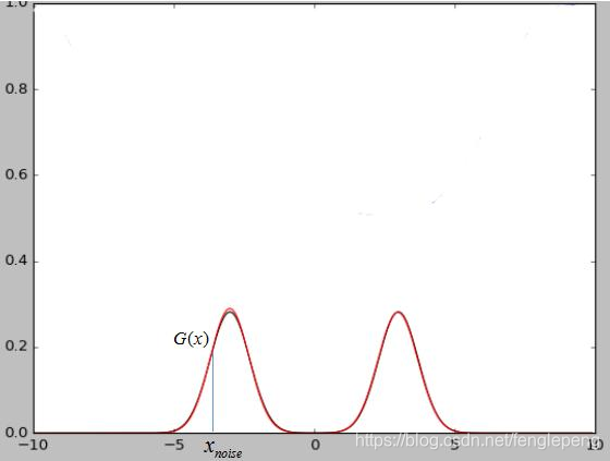 假设我们现在的数据集是一个二维的高斯混合模型,那么这么noise就是x轴上我们随机输入的点,经过生成模型映射可以将x轴上的点映射到高斯混合模型上的点。当我们的数据集是图片的时候,那么我们输入的随机噪声其实就是相当于低维的数据,经过生成模型G的映射就变成了一张生成的图片G(x)。