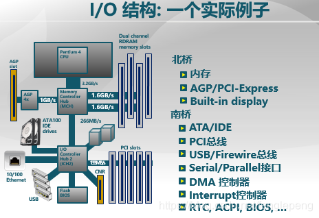 北桥连高速设备,南桥连IO设备。
