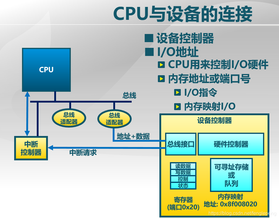 CPU与设备控制器的数据传输: