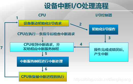 e. CPU接收中断,分发到相应中断处理例程