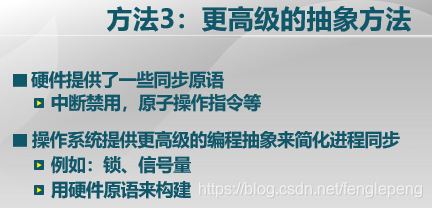 更高级的抽象方法实际是借助硬件的同步原语来实现的。