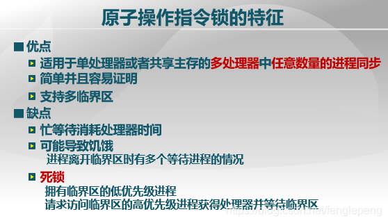 - 硬件提供了一些同步原语,包括中断禁用、原子操作指令等,从硬件上保证多个操作的原子性。