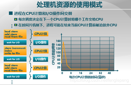 程序在CPU突发和I/O中交替,CPU占用率高说明是在充分地使用CPU。