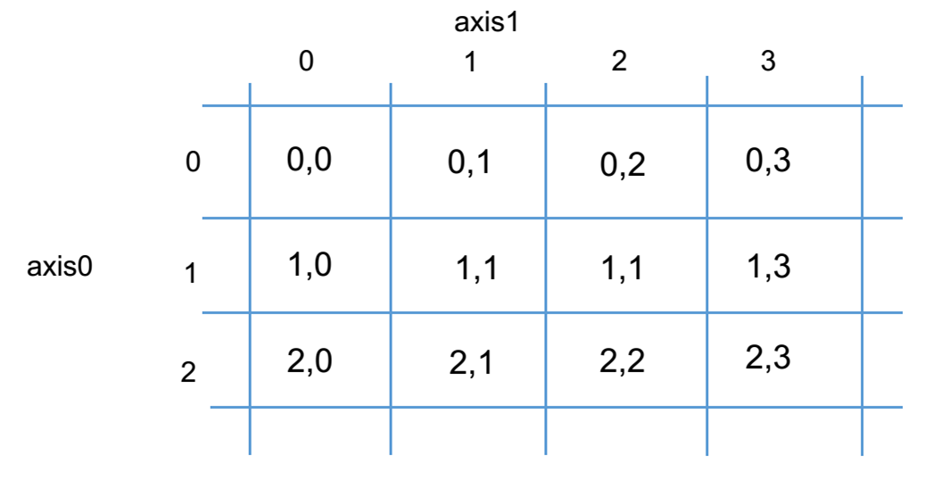 当axis=0表示列;axis=1表示行,不写代表计算整个矩阵的