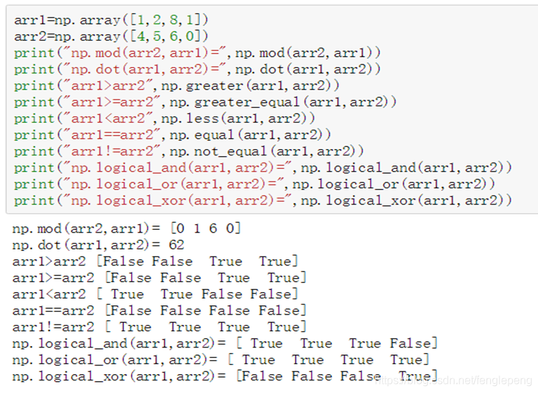 | mod | 元素级的取模 | np.mod(arr1,arr2) |
