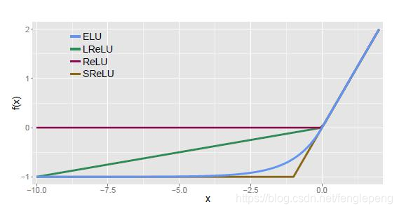 指数线性激活函数,同样属于对ReLU激活函数的x≤0部分的转换进行指数修正,而不是和Leaky ReLU中的线性修正。