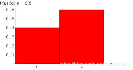 伯努利分布是一种离散分布,只有两种可能的结果。1表示成功,出现的概率为p。0表示失败,出现的概率为q=1-p。其中均值为E(x)=p,方差为Var(X)=p(1-p)。