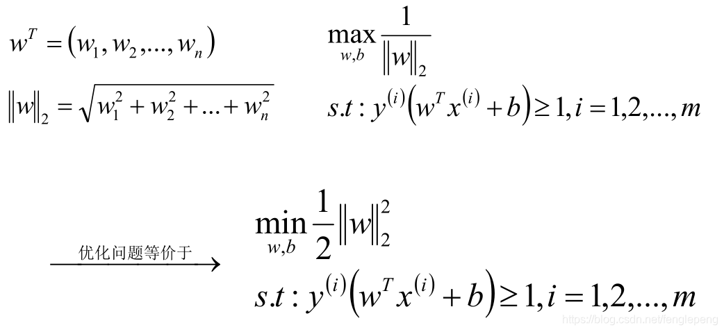 也就是说我们找出的最优的分割超平面必须满足下列的目标条件(g(x)):