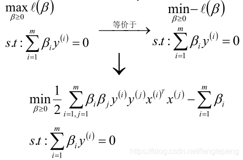 所以对于该优化函数而言,可以先求优化函数对于w和b的极小值,然后再求解对于拉格朗日乘子β的极大值。