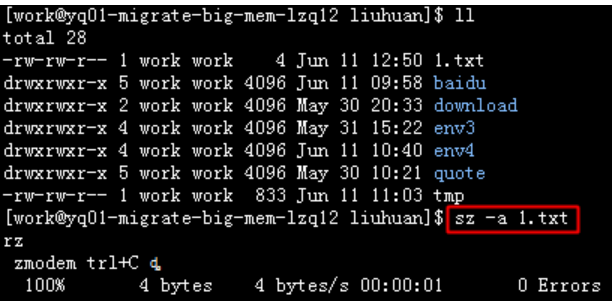 sz: 可以从服务器往本地PC下载文件(配合 –be选项可以下载大文件而不会中断)