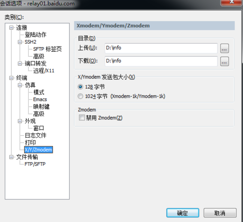 -  此处我用的是SecureCRT,具体的更改 rz上传/sz下载 的默认的路径的方法:右键点击当前会话session -> Session Options -> Terminal -> Xmodem/Zmodem ->Directories :Upload : 你要设置的路径Download:你要设置的路径