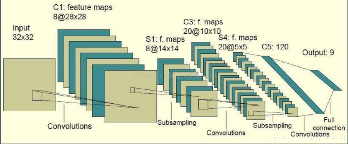 def bias_variables(shape):b = tf.Variable(tf.constant(0.0, shape=shape))return bdef model():"""自定义的卷积模型:return:"""# 1、准备数据的占位符 x [None, 784] y_true [None, 10]with tf.variable_scope("data"):x = tf.placeholder(tf.float32, [None, 784])y_true = tf.placeholder(tf.int32, [None, 10])# 2、一卷积层 卷积: 5*5*1,32个,strides=1 激活: tf.nn.relu 池化with tf.variable_scope("conv1"):# 随机初始化权重, 偏置[32]w_conv1 = weight_variables([5, 5, 1, 32])b_conv1 = bias_variables([32])# 对x进行形状的改变[None, 784] [None, 28, 28, 1]x_reshape = tf.reshape(x, [-1, 28, 28, 1])# [None, 28, 28, 1]-----> [None, 28, 28, 32]x_relu1 = tf.nn.relu(tf.nn.conv2d(x_reshape, w_conv1, strides=[1, 1, 1, 1], padding="SAME") + b_conv1)# 池化 2*2 ,strides2 [None, 28, 28, 32]---->[None, 14, 14, 32]x_pool1 = tf.nn.max_pool(x_relu1, ksize=[1, 2, 2, 1], strides=[1, 2, 2, 1], padding="SAME")# 3、二卷积层卷积: 5*5*32,64个filter,strides=1 激活: tf.nn.relu 池化:with tf.variable_scope("conv2"):# 随机初始化权重, 权重:[5, 5, 32, 64] 偏置[64]w_conv2 = weight_variables([5, 5, 32, 64])b_conv2 = bias_variables([64])# 卷积,激活,池化计算# [None, 14, 14, 32]-----> [None, 14, 14, 64]x_relu2 = tf.nn.relu(tf.nn.conv2d(x_pool1, w_conv2, strides=[1, 1, 1, 1], padding="SAME") + b_conv2)# 池化 2*2, strides 2, [None, 14, 14, 64]---->[None, 7, 7, 64]x_pool2 = tf.nn.max_pool(x_relu2, ksize=[1, 2, 2, 1], strides=[1, 2, 2, 1], padding="SAME")# 4、全连接层 [None, 7, 7, 64]--->[None, 7*7*64]*[7*7*64, 10]+ [10] =[None, 10]with tf.variable_scope("conv2"):# 随机初始化权重和偏置w_fc = weight_variables([7 * 7 * 64, 10])b_fc = bias_variables([10])# 修改形状 [None, 7, 7, 64] --->None, 7*7*64]x_fc_reshape = tf.reshape(x_pool2, [-1, 7 * 7 * 64])# 进行矩阵运算得出每个样本的10个结果y_predict = tf.matmul(x_fc_reshape, w_fc) + b_fcreturn x, y_true, y_predictdef conv_fc():# 获取真实的数据mnist = input_data.read_data_sets("./data/mnist/input_data/", one_hot=True)# 定义模型,得出输出x, y_true, y_predict = model()# 进行交叉熵损失计算# 3、求出所有样本的损失,然后求平均值with tf.variable_scope("soft_cross"):# 求平均交叉熵损失# 求平均交叉熵损失loss = tf.reduce_mean(tf.nn.softmax_cross_entropy_with_logits(labels=y_true, logits=y_predict))# 4、梯度下降求出损失with tf.variable_scope("optimizer"):train_op = tf.train.GradientDescentOptimizer(0.0001).minimize(loss)# 5、计算准确率with tf.variable_scope("acc"):equal_list = tf.equal(tf.argmax(y_true, 1), tf.argmax(y_predict, 1))# equal_list None个样本 [1, 0, 1, 0, 1, 1,..........]accuracy = tf.reduce_mean(tf.cast(equal_list, tf.float32))# 定义一个初始化变量的opinit_op = tf.global_variables_initializer()# 开启回话运行with tf.Session() as sess:sess.run(init_op)# 循环去训练for i in range(1000):# 取出真实存在的特征值和目标值mnist_x, mnist_y = mnist.train.next_batch(50)# 运行train_op训练sess.run(train_op, feed_dict={x: mnist_x, y_true: mnist_y})print("训练第%d步,准确率为:%f" % (i, sess.run(accuracy, feed_dict={x: mnist_x, y_true: mnist_y})))return Noneif __name__ == "__main__":conv_fc()