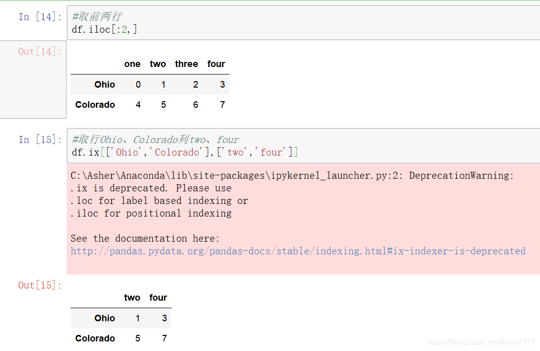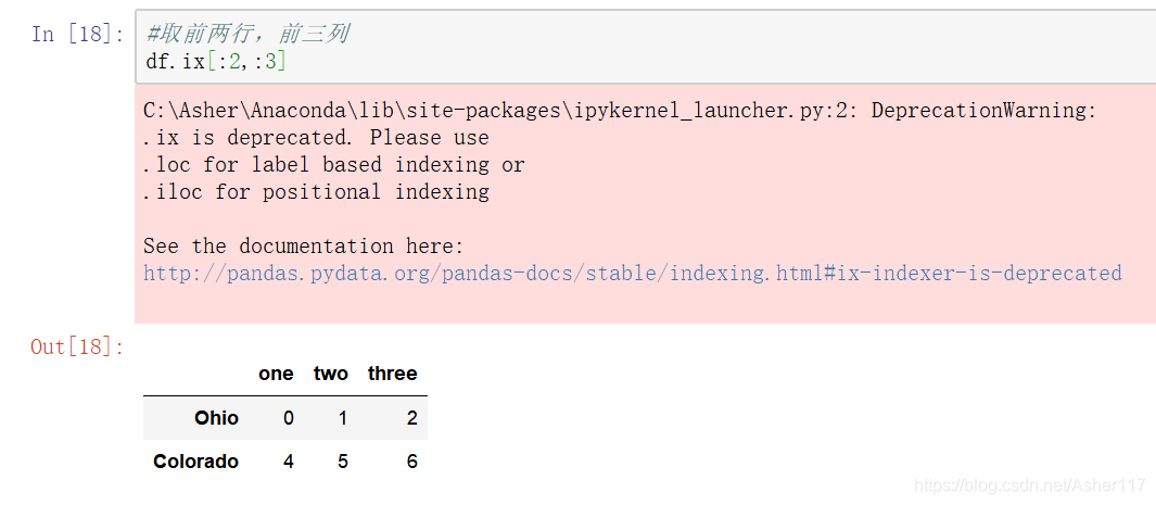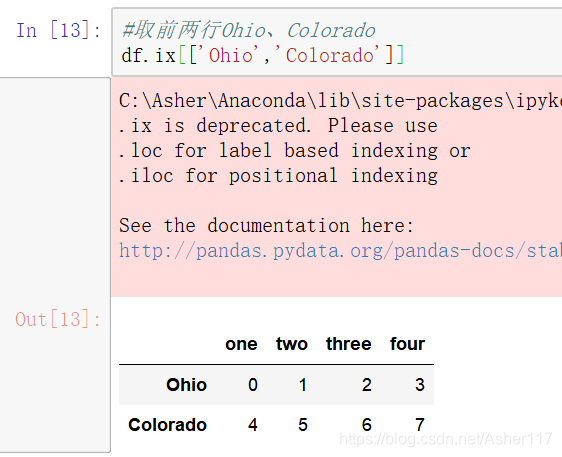 • 同时根据标签和位置选择数据——x.ix[行,列]