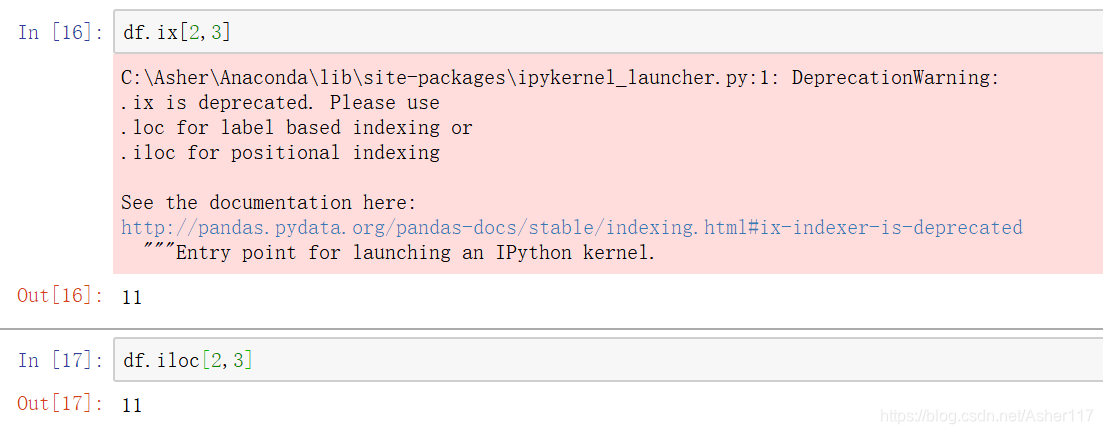 • 以位置(第几行、第几列)为索引选择数据—— x.iloc[行位置,列位置]
