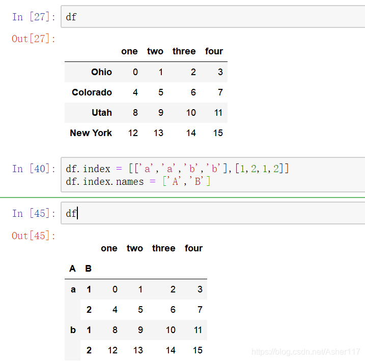 @@首先构建一个层次化索引的DataFrame,依旧是刚刚构建的DataFrame,我们将索引改为两层索引如下: