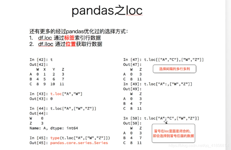 • 以标签(行、列的名字)为索引选择数据—— x.loc[行标签,列标签]