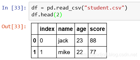 2、调用dataframe的head()方法可以返回所有行数据,若传入一个n,则返回前n行数据。默认n=5