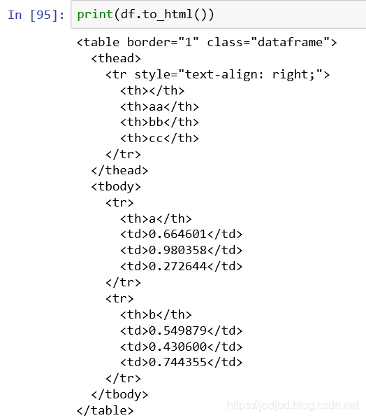 可以通过dataframe.to_html()方法,返回的是表格的html代码