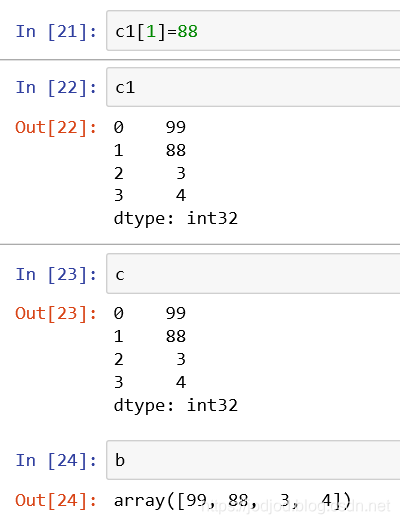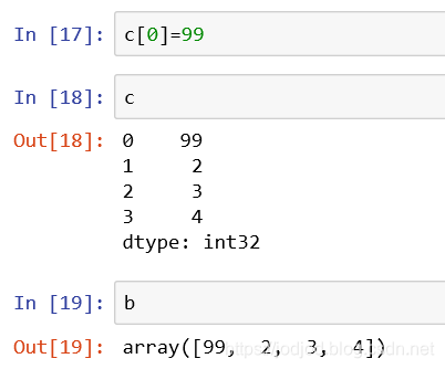 注意:此时修改series中元素会对原ndarray有影响