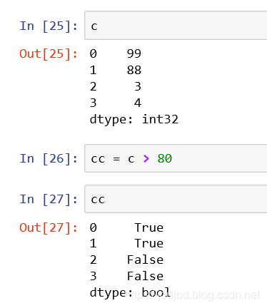 可以对series对象直接进行逻辑运算,但回返回一个布尔类型的series
