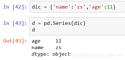 在series的构造函数中传入一个字典,那么字典的key则为index,value为series的values元素