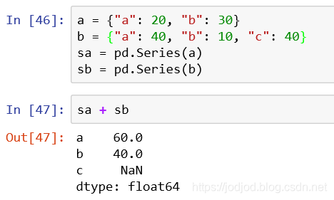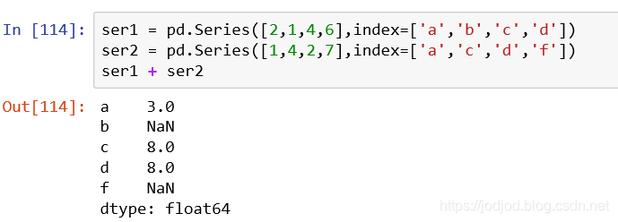 两个series进行运算时,只有相同索引的元素才会进行运算