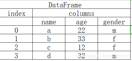 DataFrame数据结构与关系型表格类似,是多维的series,它的"values"为colunms,即多列,每一列的数据类型可以不相同