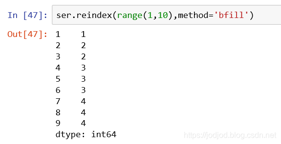 若series对象中索引缺失了很多项,也可以通过reindex()来填充索引