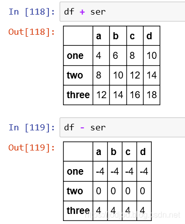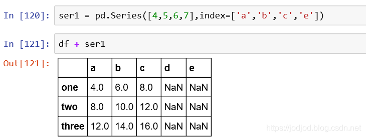 dataframe也是类似的,只有列名和index相同的元素才会运算