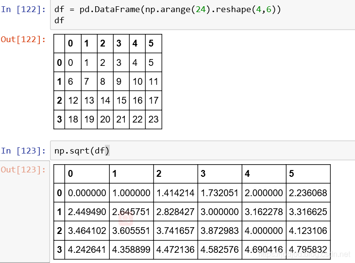可以直接通过numpy中的sqrt()方法,传入一个series或dataframe对象
