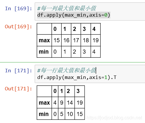 例如求dataframe中每一行或每一列的最大值和最小值