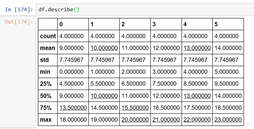 使用describe()函数可以查看所有统计量