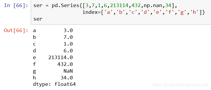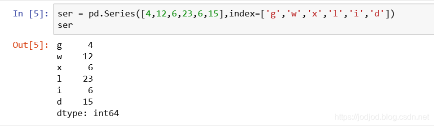 2、也可以通过传入ndarray创建series