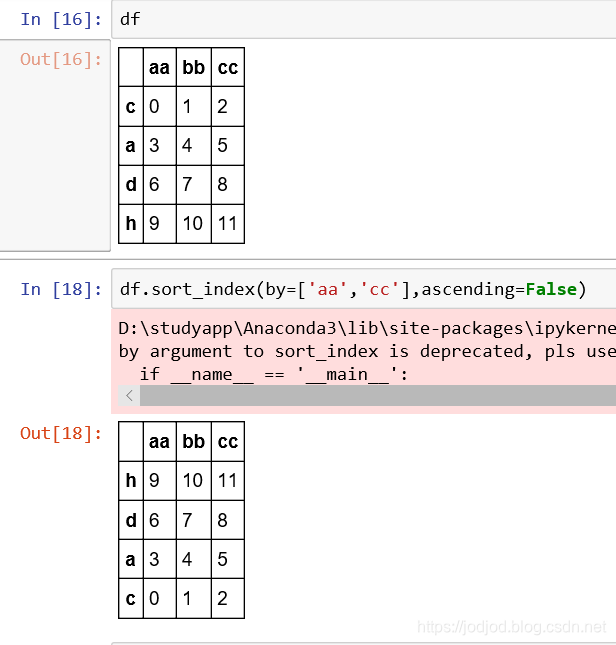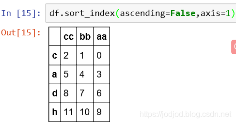 同上sort_index()。ascending默认为True,axis默认为0