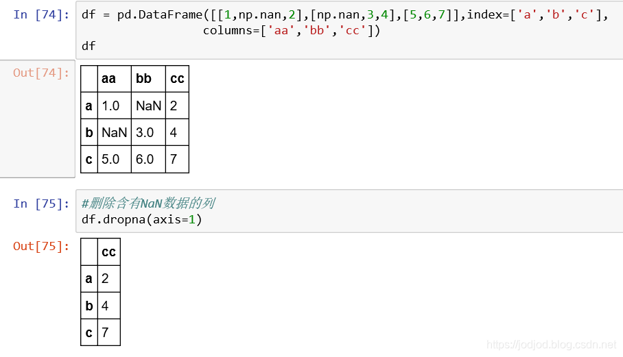 在dataframe中需要指明axis,会删除含有NaN数据的一整行或一整列