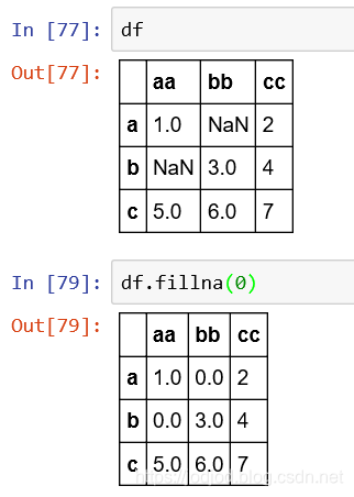 1、通过fillna()实现,传入参数表示填的值